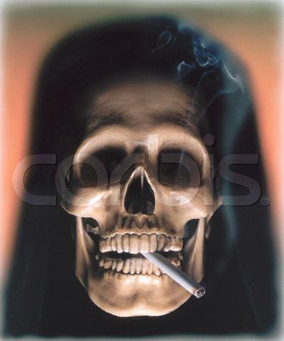This image is titled "Dangers of Smoking." The mood is scary or dangerous. Remember using the flashlight to shine a beam of light up under your chin to add weird shadows on your face? Yeah, that's whats going on here.