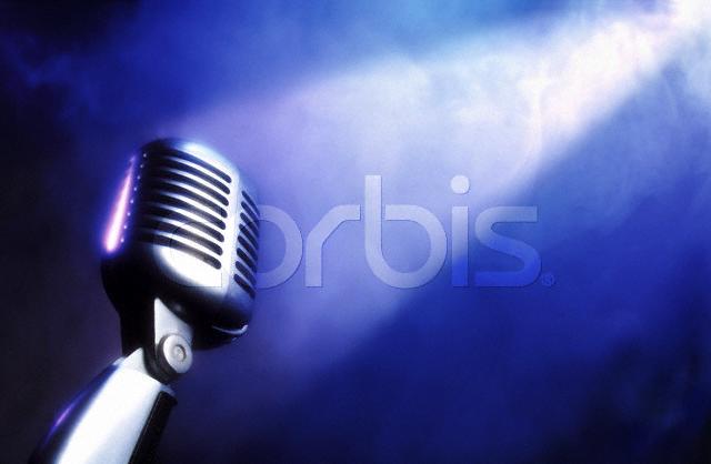 The image is of a microphone and the mood conveyed is strength. This is accomplished through the angle of the camera and through the angle of the spotlight.