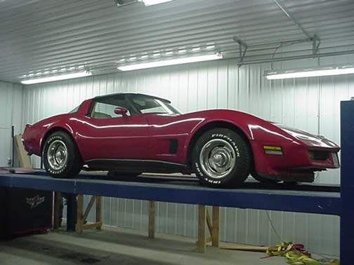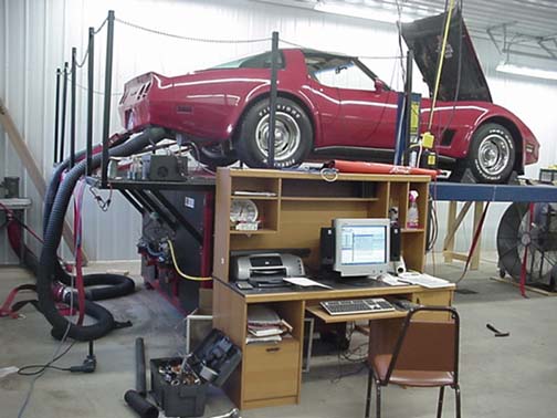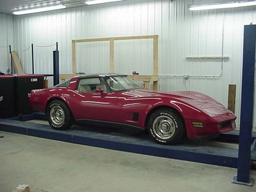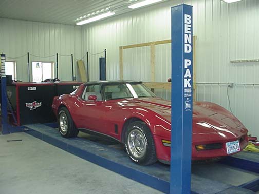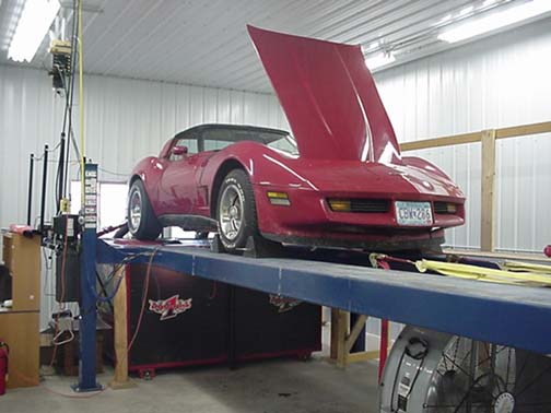 Car is strapped securely to wheel dyno