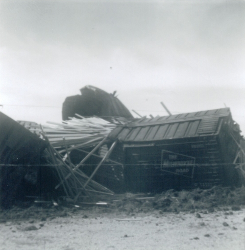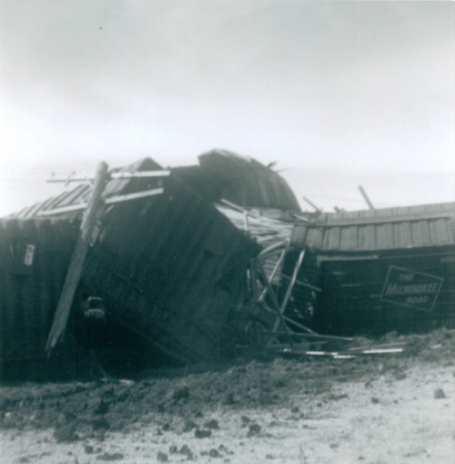 On Sunday August 13 1967 21 Milwaukee Road freight cars derailed. The derailment almost hit the high school gym. It took a week to clean the wreck up.