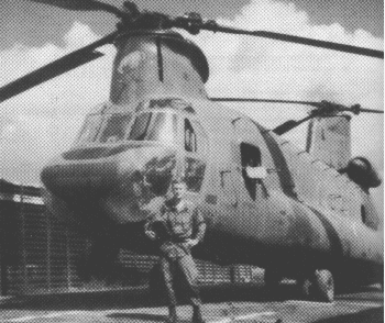 flying up toward the aft rotor. The Chinook's 110 knot rotor wash was always kicking up poncho