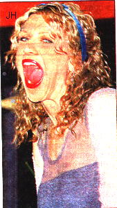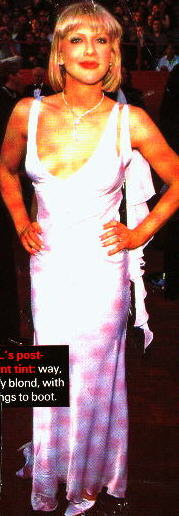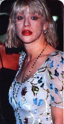Courtney Love on MTV, announcing the '98 nominees, with her mouth wide open