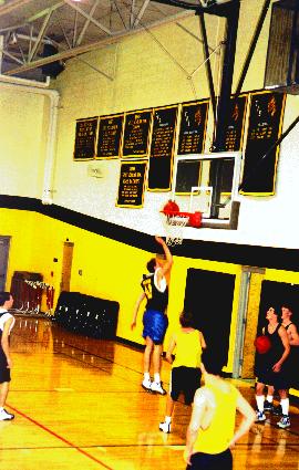 Eric hitting and easy layup during a drill before the Varsity/JV scrimmage.