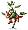 Description ~ Cayenne pepper is a stimulating herb made from the dried pods of chili peppers and is well known for its pungent taste and smell. It is a very variable species growing to 1.5 meters high. The shape of the leaves vary according to cultivar from broadly rounded to elongated with a tapering tip. The color ranges from dark to light green and occasionally even purple. Single, white flowers usually occur at the ends of branches. Fruits, or the pepper, vary in size, shape, color and pungency. They range from the mild, fleshy, sweet peppers used as vegetables and to make paprika, to the tiny, fiery, finger-like chili peppers. Seeds are white or cream, almost circular and flat.