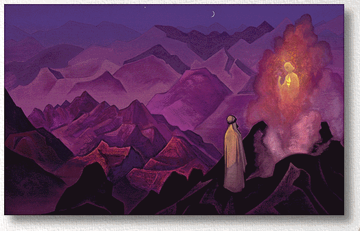RECITE in the name of your Lord, Who created mankind from clots of blood. RECITE, and your Lord will be the Bountiful, He Who has taught by the pen, taught mankind what was not known. (Surah 96:1-5)Muhammad is now very frightened. A thief in the night has entered His cave, and is telling Him to "recite" but has no book with him to recite from. The "man" is insane, and probably dangeorus. Muhammad then flees the cave, but, when He gets outside it is just beginning to get light, and Muhammad sees the man standing upon the horizon in every directly He looks.