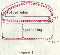 Stitch gathering thread 1 inch from folded edge at top and another 1/4 inch below the first. (figure1).