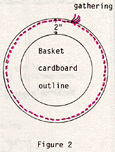 Measure around the basket and double that mesurement for the length of fabric strip to be gathered.
