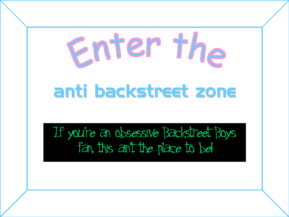Welcome to the site for people who don't like Backstreet Boys! Before entering you must know that this page is humor and entertainment. I don't truly want to kill Backstreet Boys, nor do I HATE them in a way to wish harm to them. This is a re-creation of "Rachel and Ray's Anti Backstreet Boys Site", because it was deleted by angelfire, cuz of so much hate bladidah so I redid it without saying I'm going to kill them etc. My icq number WAS 41194965 until STEVE MATTHEWS unregistered me TWO times. I will post my new one soon. AND I AM NOT RAY I am just RACHEL SO STOP TALKING TO ME AS "YOU GUYS"