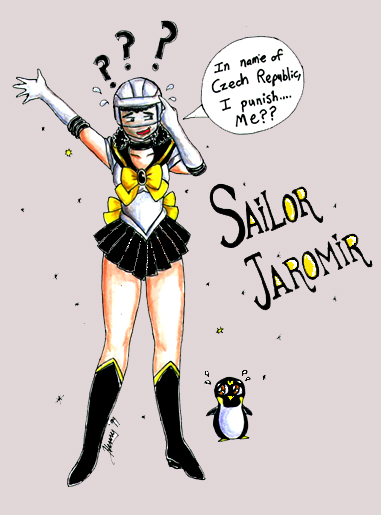 This is a drawing of Jagr that my sister drew-- he's supposed to be like a Sailor Scout from the Japanese cartoon called Sailor Moon