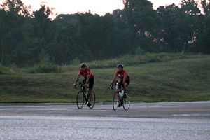 Much thanks has to go to our Sponsor's. South County Cyclery for helping figure out what we need to take in case we have problems and for the entry fee and jerseys. Schwinn for light sets to keep us safe at night, water bottles and rear lights. Pepsi for all the All Sport we could drink to keep us riding with energy through the heat of the day and cool of the night. Gus' Pretzel for the Pretzels (great carbohydrates) to help feed the team and crew.