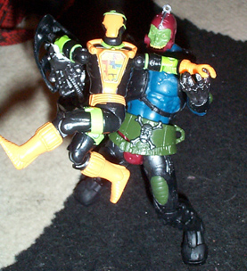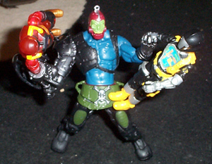 Trapjaw has always been a bit behind the times and now that the mystic wall has come down he's able to add some more CDs to his collection he's really gotten into the "hip craze" that swept Eternia a few years ago. No one in Skeletor's minions would agree to be his partner so he modified this new part to fill that void in his social life. I don't want to be the one to tell him that swing has died.