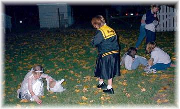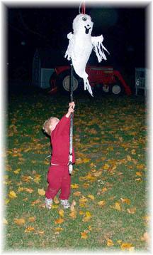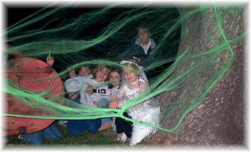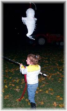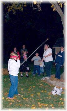 On October 15, 2000, members of the Clover Connections 4-H Club met at the Bethard's home for their annual Halloween Party. Each family brought "pot luck" to add to the main meal of barbecue brisket. We ate around a campfire, roasted marshmallows, listened to spooky music, played with glow sticks, and topped off the evening by breaking open a pinata.