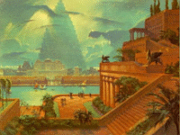 The approach to the Garden sloped like a hillside and the several parts of the structure rose from one another tier on tier... On all this, the earth had been piled... and was thickly planted with trees of every kind that, by their great size and other charm, gave pleasure to the beholder... The water machines [raised] the water in great abundance from the river, although no one outside could see it.