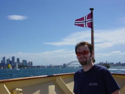 On Saturday, March 8th we took a harbour highlights cruise that we recived free tickets for as part of the "program" we are here on. It lasted about an hour and a quarter and it was a beautiful clear day. First, we walked through the park and I made Brendan pose for photos so we'd look like tourists.