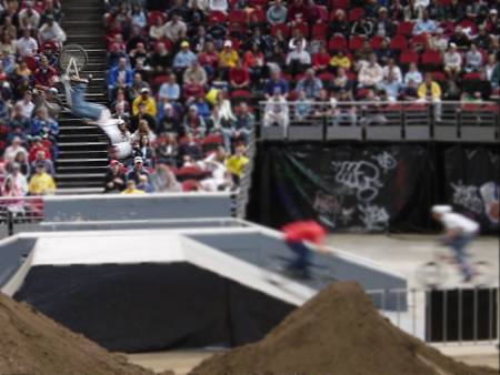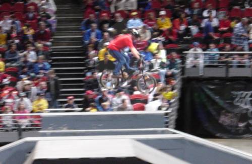Since it was pouring when we first got there, we headed inside to see what they called "urbanKorruption", which was actually kids doing tricks on BMX bikes and skateboards.