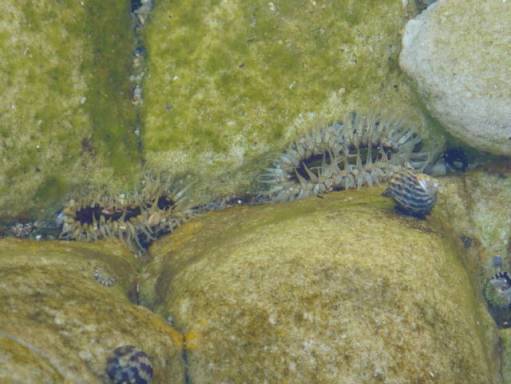 Here is a bunch of the holes, which are actually mini tidepools. I call 'em tideholes.