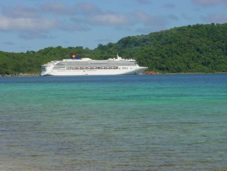 While we were in town this ENORMOUS cruise ship came into port for a few hours, meaning that the town would soon be exploding with sunburned Australian tourists that needed duty free stat! All the shops know when the ships are coming in and try to lure the tourists in with discounts.