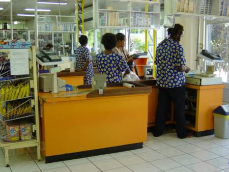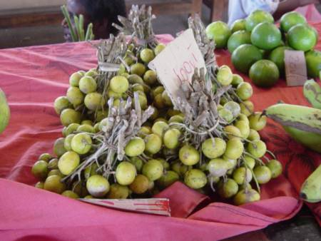 Linda drove Brendan and I into town so that we could do some shopping. The first stop was the market, which is basically a roof with a bunch of tables underneath. People pay for a table and sell produce, shells and wooden crafts.