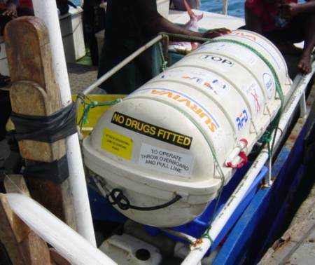 This capsule holds the lifeboat and "No Drugs Fitted" apparently means "Please don't break into the lifeboat for drugs because there aren't any inside."