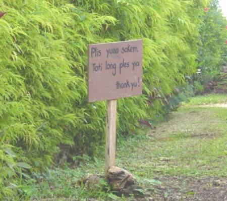 Roughly translated, this means "No Dumping, Thank You". The language of Bislama is what all ni-Vanuatu people speak and it is basically pidgen English.