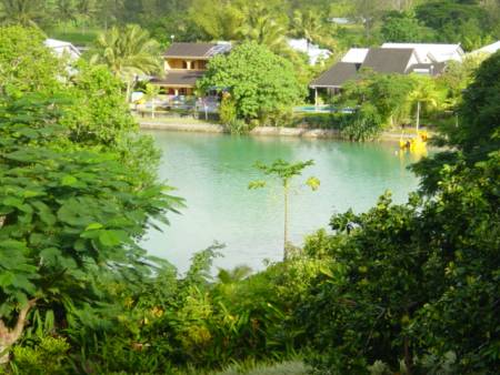Erakor Island Resort behind us, this is the mouth of the lagoon and Tom and Linda live on the end of it.