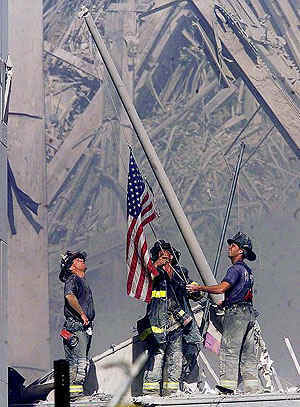 The pictures below symbolizes firefighters,and a brotherhood. Although American had been struck a mighty blow, the people of our nation united together. Upon the unforgetable day of September 11th all firefighters united as one. On this day across the nation there was a humble revrence for our fallen brothers.
