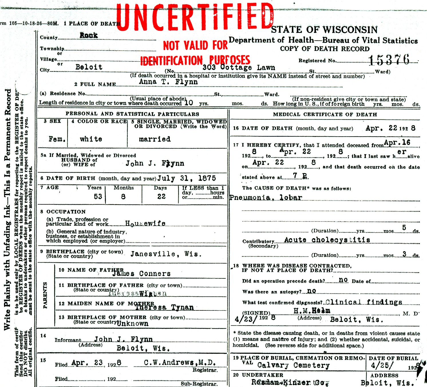 Death-Rock Co. Reg. of Deeds, #15376, Death Ceterficate.