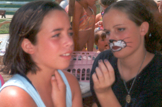 Me (right) painting the face of a girl at my pool on "Family Day"