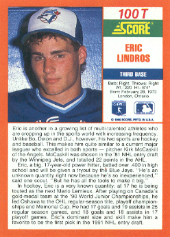 Well, not exactly... Other than being a great hockey prospect, Eric caught the eyes of some baseball scouts as well. He was given some kind of tryout by the Jays. Obviously, Eric was better at hockey, so he stuck with that instead. He was a big power hitter, and batted over .400 in high school. Who knows how his professional baseball career would've gone?