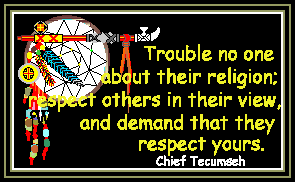 The corner stone of their belief was the Medicine Wheel or what others refer to as the "Circle of Life". Everything and everyone is connected in some way and we all go through the circle of life. Animals and plants provide us with nourishment. Trees provide us with shelter. Eventually we return to the earth to provide nourishment for all of them. When we harm the earth and water, hunt animals to extinction, we are only hurting ourselves and showing disrespect for what God created for us. Native Americans have a saying "I walk in Beauty". What they mean is that all of God's creations are beautiful and we should appreciate it's beauty and when we do, we walk among beauty. We spend so much time admiring great works of art by artists, sculptors, architects, etc.; but the greatest masterpiece of all, God's Creation, we do not even appreciate. Instead, we are stripping the earth, poisoning our waters, hunting animals to extinction, cutting down forests, etc. Is this how we honor God and all that he gave us?