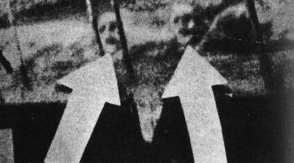The man in the black in the backround of this photograph is the man who the photograph was being taken of.The images in front of him weren't there at the time but they showed up when the film was developed..
