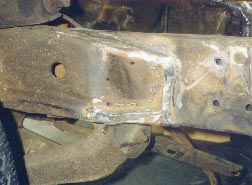 After leveling everything up and measuring for square about 20 times, we cut off the original front clip just behind the spring pearch and just in front of the cab mount.