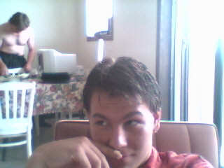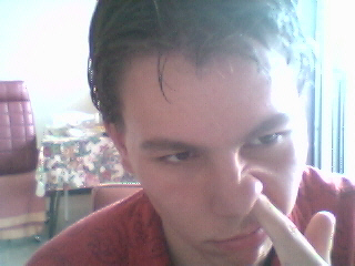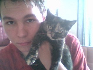 heres a weird pic of him, but hes still a cutie even my mom thinks soo :)