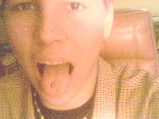 heres a newer sexy pic of my dick stickin out his tongue... showin off his tongue ring :)