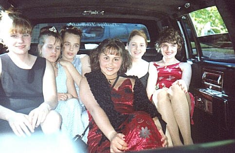 Heres Krystal in a limo wit a buncha chicks