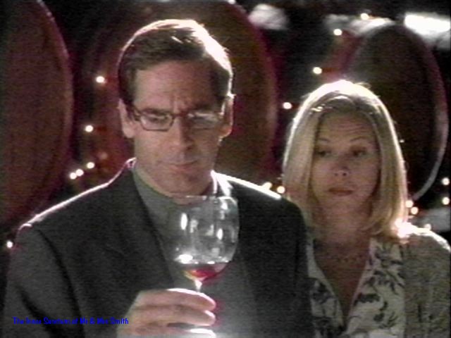 "Imagine mounds of round, succulent grapes, flavoured by rich soil, warmed by the sun. You step into the barrel and feel them massage the soft tender soles of your feet and then so suddenly it takes your breath away, they burst between your toes in a sweet explosion of such sensual pleasure that you will never again taste wine without blushing at the memory" Softly spoken by Mr. Smith to Mrs Smith. The Grape Escape Episode