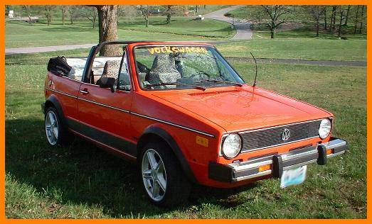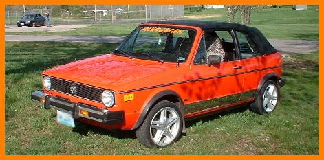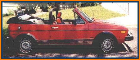 The car came with some Enkei wheels, but they were pretty scratched and banged up. One was even missing a center cap. I found some original stock 13" Rabbit Convertible wheels at a scrap metal yard and cleaned them up and put them on. They weren't perfect, but was better than the others. (The stock wheels that came on the Rabbit Convertible were also stock on other VW's in the early 80's such as Scirocco's and Jetta's.) Then a friend that had a Cabriolet, which he sold, offered me the 16" Ronal wheels that you see in the latest pics for a price that I just couldn't possibly refuse. These tires and wheels were $1400 new. They were made in Germany and fit the VW's perfect with no lug conversion needed.