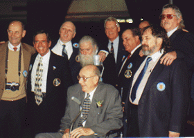This picture was taken at Wright Patterson Air Force Base near Dayton, Ohio on December 8, 2000 at William Pitsenbarger's Medal of Honor Ceremony. This picture is of the survivors of Charlie Company, 1st Division, 2nd Battalion, 16th Infantry and William Pitsenbarger's father. Pictured from left to right: George Wilson ( author of Mudsoldiers); Johnny Libs ( 2 nd platoon leader), Phil Hall ( 2nd platoon), Ron Haley ( 1st platoon), Kenneth Alderson ( Company XO), Alvin Brown ( 1st platoon), Galin Summerlot ( 2nd platoon), Charlie Epperson ( 1st platoon), Dave Peters (RTO for CO). In front William Pitsenbarger Sr.