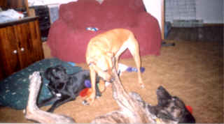 This is Abby Mae, Cheyenne, Nellie Rose and Karen our trainer. This is in 9/03 after they all got their CGC certificates.