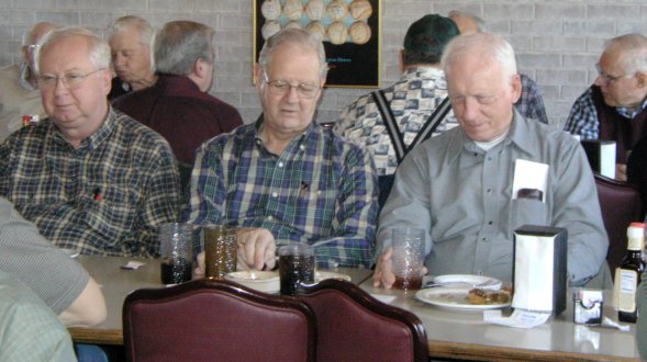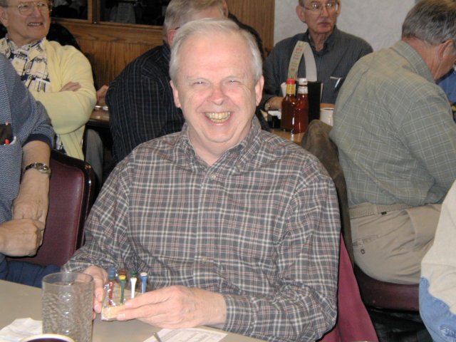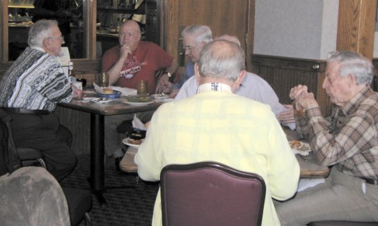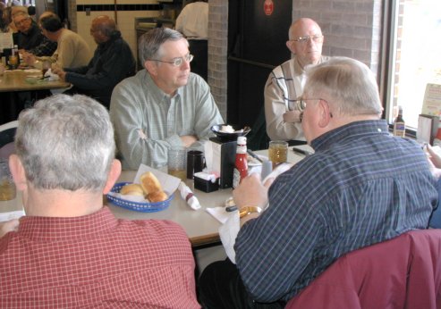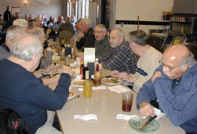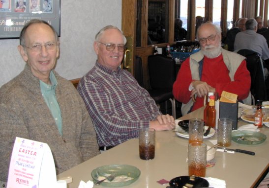 We had a number of first timers and some who hadn't been with us for a while. Howard Anthes returned from Florida in time to make his first appearance. John Tipton, recently retired on 2/28/05, joined our happy band. Al Chase, Al Bowell, Heinz Dutt, Ray Hoffman, and Bill Wickham were also among the first timers. Bill Grubbs and Don Jeffrey made an appearance after a too long absence. Hope you all enjoyed the lunch, the gab and the program and will be back often.