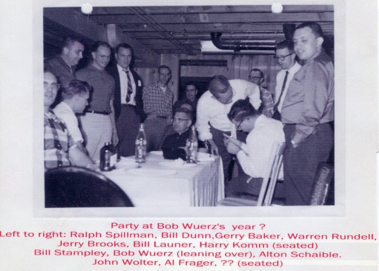 This old photo (circa 1956-58) provided by Ralph Spillman shows some of the guys who worked on the Quail GAM-72. The occasion was a batchelor party for Al Rosenfeldt. The party was in Bob Wuerz home basement