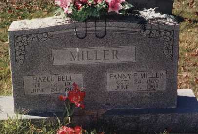 Hazel Bell February 22, 1914 June 24, 1962 wife of Sam Bell daughter of William David and Nora Mae Campbell Miller Fannie Miller October 24, 1870 June 7, 1963 daughter of Joseph Jackson & Francis Shawler Miller (Submitted by Becky Pyland Davis)