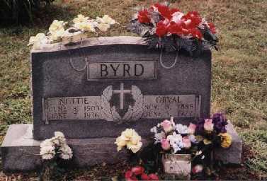 Orval Byrd, Nov 8, 1888-June 5, 1977 and wife, Nettie Byrd, June 8, 1903-June 7, 1936, buried at Pine Cemetery, Ripley County, Missouri. (Submitted by Becky Pyland Davis)