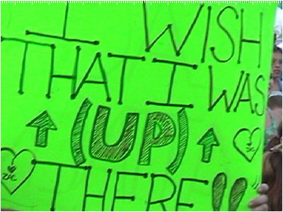 First they sang 'Gimme some lovin' but I don't really remember that. When 'Ever lonely' was playing, my sisters and I couldn't hear what they were saying so we made it up and thought they were saying "...until my dog gets through..." instead of "..until my call get's through..." it was funny. Another funny thing my sisters sang was on 'Where's the love?' and they sang 'Where's my glove?' instead. The song 'Summer time blues came on and it was really cool. That song was also done as a cover by country music star Alan Jackson (he's also from Chatanooga, GA) and the guys put a cool twist on it saying 'Give me a jelly donought...' in one part. A little ways into the concert, the guys went backstage and came back out Tay had taken off one of his shirts, to reveal a tight, white one cause all the girls were screaming, except for me of course, cause I couldn't see anything. My sister's told me what happened, I guess they were watching the big screens. I also remember Taylor asking the crowd "Is it always this hot down here?"