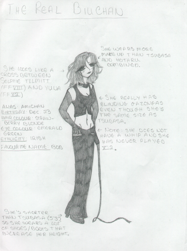 Welcome to Monday! As you can see, there's nothing new here. Let's see... I spent some of last week (Friday it was) playing Final Fantasy X-2, so I'm still on my tangent for it. Of course, I just can't get enough of the sexy people in it! Whoo-hoo! You know what I've decided? I'm obsessed. But you know what? I don't care.