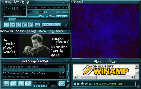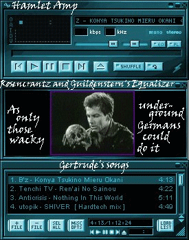 This skin didn't take me very long... It was mainly a joke. I made this for my sister Alison, another big Shakespeare fan, like me, as well as a Mystery Science Theatre 3000 fan... This is from a German version of Hamlet that was badly, and pointlessly, dubbed back into English and watched by the guys on the show... It's a favourite of Ali-chan and I's, so I decided to put it up on the page so that others could enjoy it...