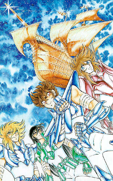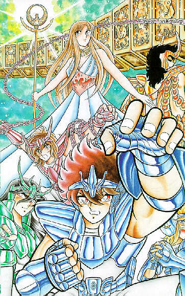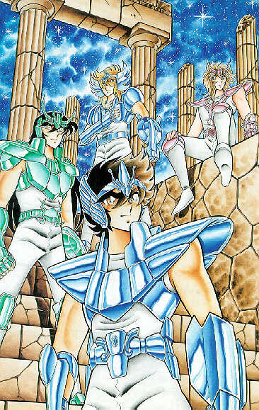 Seiya, Shiryu, Shun, Hyoga, Ikki, Saori, Aioria