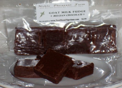 Our fudge is made using the highest quality ingredients. We use our own unpasteurized and filtered goat milk, fresh locally produced Amish butter, pure cane sugar, and dark chocolate (Belgian Callebaut 70% or French Noel Royale 67%, depending on availability).