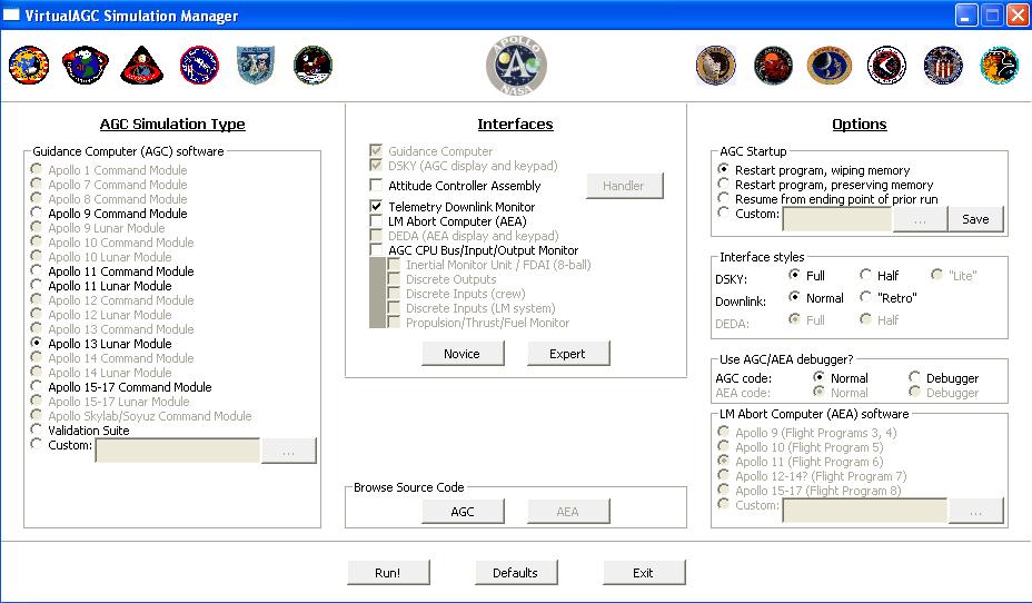 ![]() In fact the emulator of the AGC uses modern graphic resources (probably the microsoft MFC), and is programmed in a modern language (very probably C++). |
