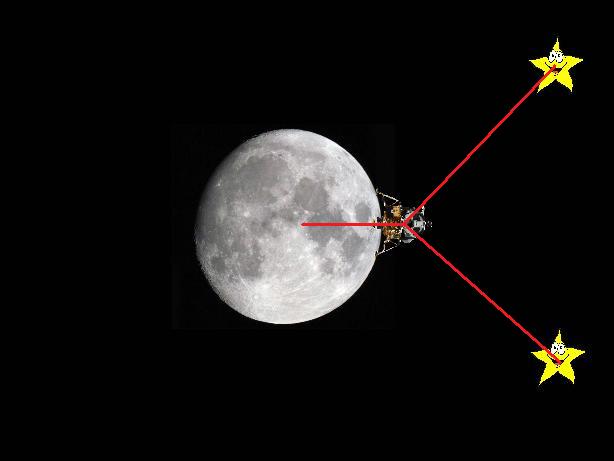 ![]() Dans le cas où le vaisseau spatial est près d'une planète (dans ce cas la lune), la troisième étoile peut être remplacée par la gravité locale qui donne la direction du centre de la planète. |